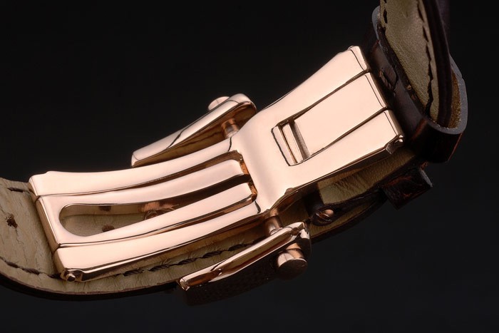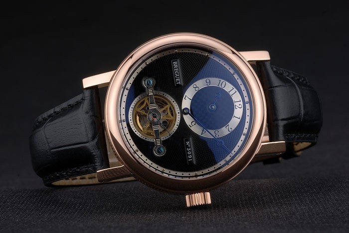 Armband plattiert: Breguet Hitze geprägt schwarzem Krokolederarmband Brequet graviert mit 18k Rose vergoldet klappbare haken Schnalle clasp