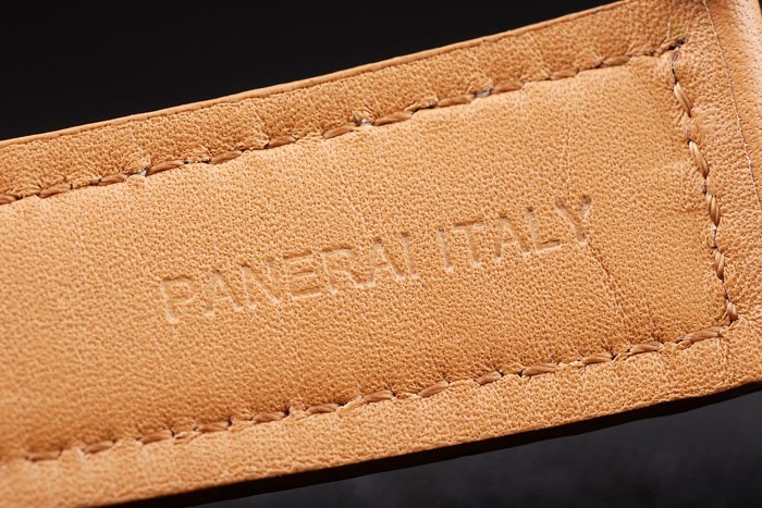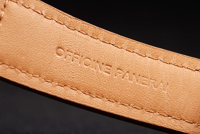 Armband: Hellbraun Lederband mit Wärme geprägt Officine Panerai Italien Stempel und gebürstetem Edelstahl Haken -Schnalle Spange mit Panerai engraving