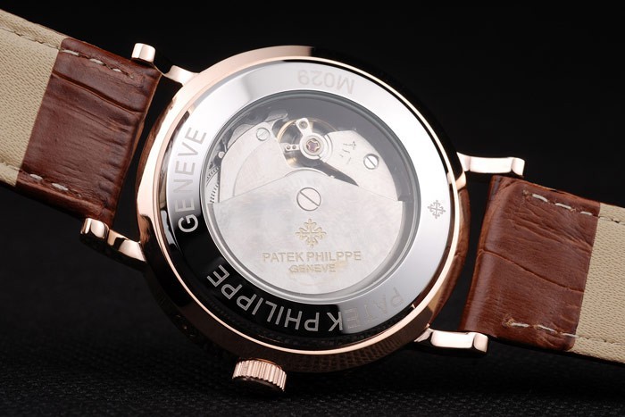 Die Patek Philippe Grand Komplikationen Hohe Kopie Replica Uhren 4617 ist eine exquisite Uhr. Das Gehäuse aus 18 Karat Roségold ist mit einer gerillten Lünette verziert und das braune Krokodillederarmband ist mit einer 18 Karat Roségold-Schließe versehen. Das Zifferblatt ist versilbert und mit römischen Ziffern und Blattzeigern versehen. Das Uhrwerk ist ein japanisches Miyota-Automatikwerk. Der Gesamteindruck der Uhr ist luxuriös und elegant. Der Preis ist jedoch recht hoch, sodass es sich um eine Uhr für besondere Anlässe handelt.